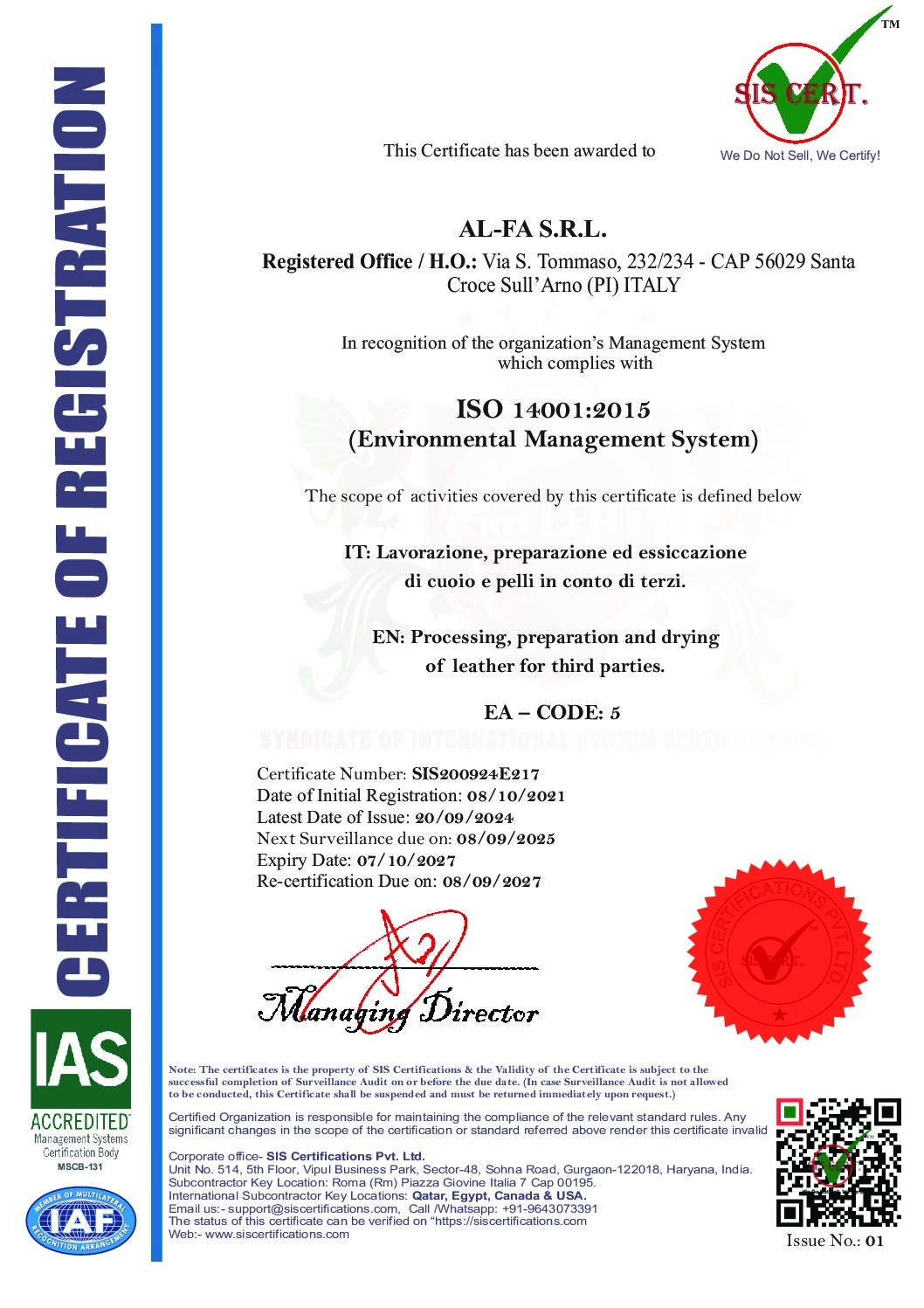 Per il sistema di gestione secondo EN ISO 14001:2015