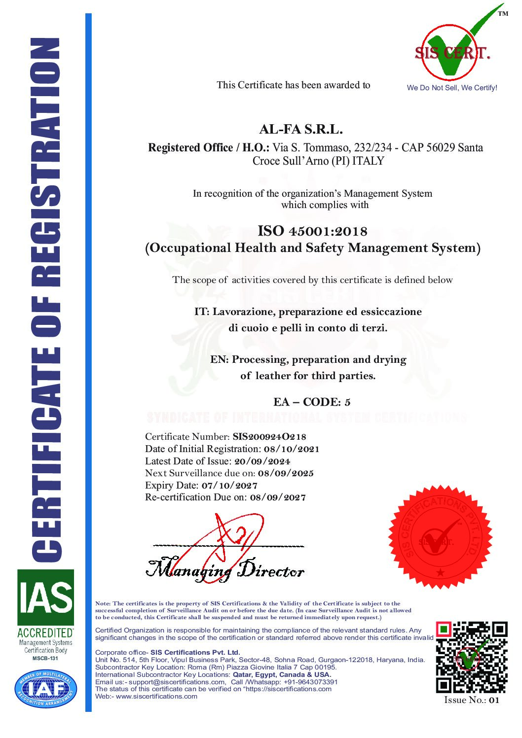 Per il sistema di gestione secondo EN ISO 45001:2015