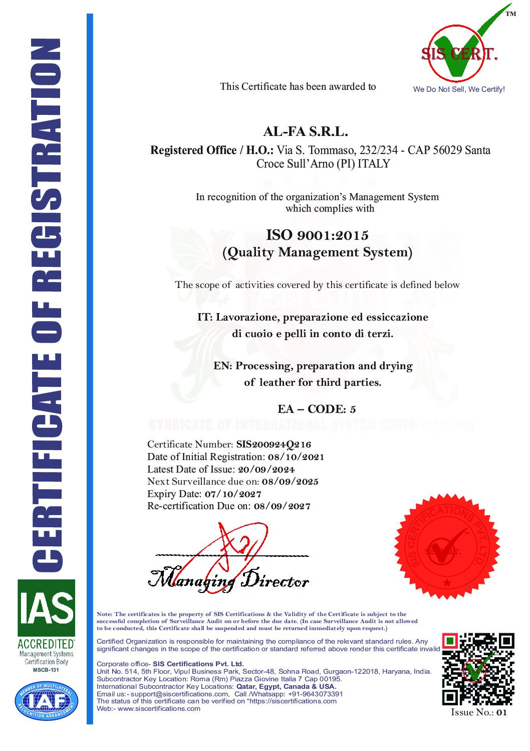 Per il sistema di gestione secondo EN ISO 9001:2015