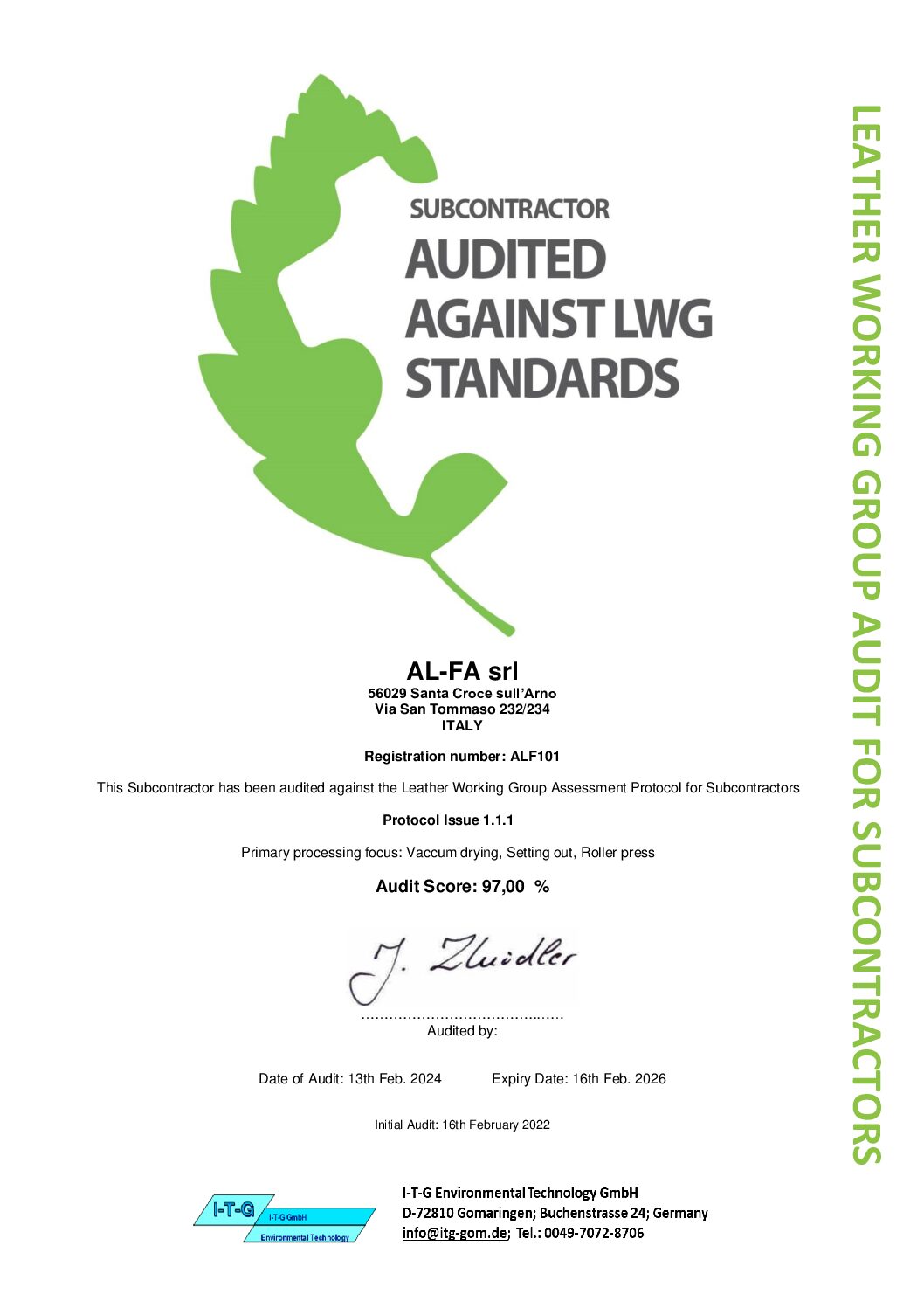 Per il sistema di gestione secondo LWG Subcontractor Audit